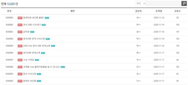 평가원은 이의신청 중 단순 의견 개진이나 중복 접수 등을 제외하고 실제 심사 대상 문항만 추려 심사를 진행할 예정이며 결과는 오는 25일 최종 정답 발표와 함께 공개된다.