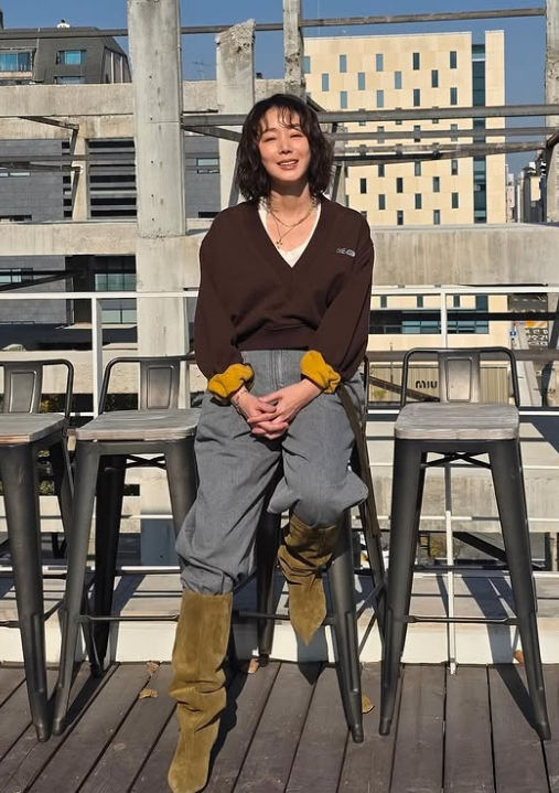 사진 속 김성령은 브라운 컬러의 크롭 카디건에 루즈핏의 와이드 팬츠를 매치하고, 바지 밑단을 부츠 안으로 넣어 연출하는 과감한 스타일링을 선보였다. 특히 브라운 스웨이드 롱 부츠와 옐로우 컬러의 이너 소매가 믹스매치되며 힙하고 감각적인 분위기를 자아낸다.
