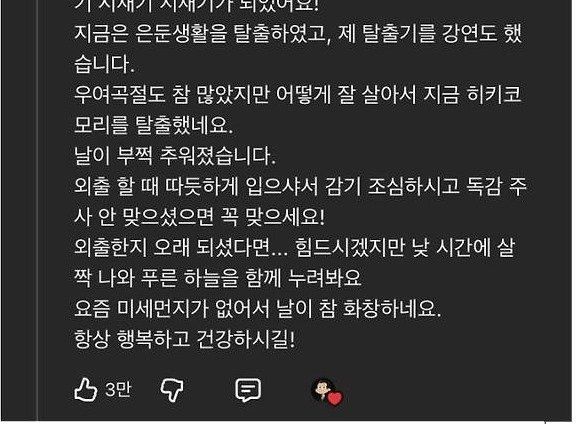 히키코모리 생활을 탈출하고 싶어 유튜브를 시작한 사람