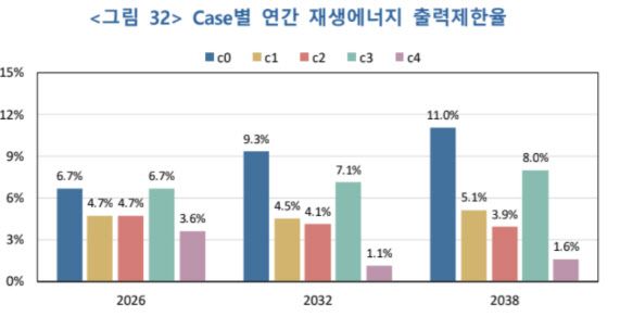 한은과 전우영 서울과학기술대학교 교수 등에 따르면 이같은 유연성 수급자원 없이 11차 전기본 계획의 재생에너지가 보급될 경우 출력제한 발생 비율은 2026년 6.7%, 2032년 9.3%. 2038년 11.0%까지 급증했다. 반면 ESS와 전기차 그리고 냉난방저장장치(ES)를 통합 운영할 경우 출력제한율이 2026년 3.6%, 2032년 1.1% 등 매우 낮은 수준을 기록하는 것으로 전망됐다.