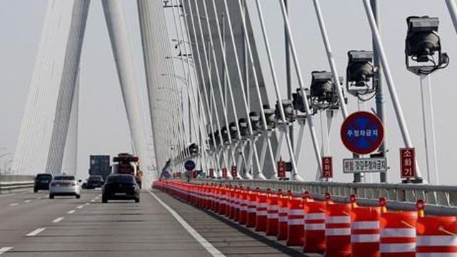 인천대교 갓길에 설치된 주정차 방지용 드럼통 / 연합뉴스