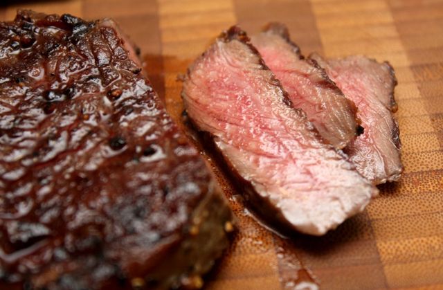 스테이크를 구울 때는 팬을 충분히 달군 후 가장 센 불에서 고기의 겉면을 빠르게 구워 바삭한 갈색 막(마이야르 반응)을 형성해야 한다.