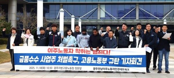이주노동자를 지원하는 광주전남 노동단체가 사업장 변경을 명목으로 금품을 갈취한 사업주 처벌을 촉구했다.