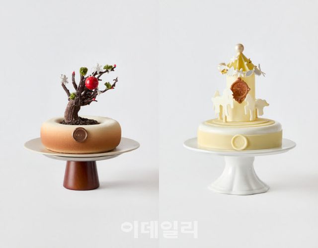 한화호텔앤리조트의 안토는 대표 케이크로 ‘600년 은행나무’와 ‘메리고라운드’를 내놨다. 가격은 11만 9000원이다. 600년 은행나무는 얼그레이 무스와 살구, 패션후르츠 크림을 조합한 케이크로 안토의 상징인 은행나무를 형상화한 게 특징이다. 메리고라운드는 화이트 초콜릿으로 회전목마를 구현한 케이크다. 이 두 제품은 하루에 단 3개만 한정 제작해 판매한다. 지난 10일부터 사전예약을 받기 시작했다.