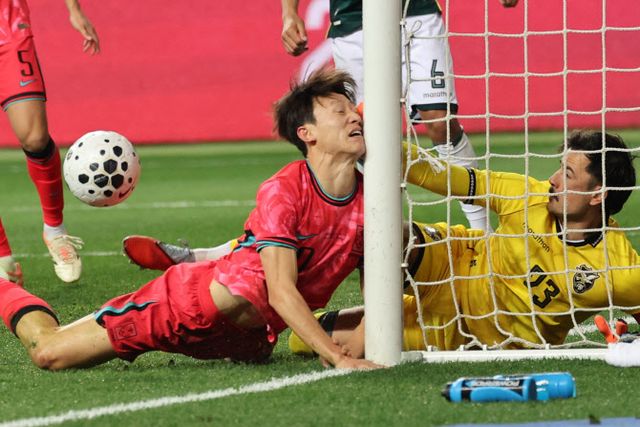 전반 10분 손흥민(로스앤젤레스FC)의 코너킥이 뒤로 흐르자 쇄도하던 이재성(마인츠)이 다이빙 헤더를 시도했다. 볼리비아 수문장 기예르모 비스카라가 번뜩이는 반사 신경으로 막아냈다.