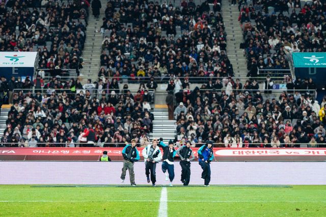 코르티스는 압도적인 퍼포먼스를 펼치며 강렬한 눈도장을 찍었다. 특히 이날은 국가대표팀의 올해 마지막 A매치라 많은 관심이 쏠렸다. 다섯 멤버는 국가대표 선수단이 실제 착용하는 앤썸 재킷을 리폼한 의상을 입고 등장해 시작부터 눈길을 사로잡았다.