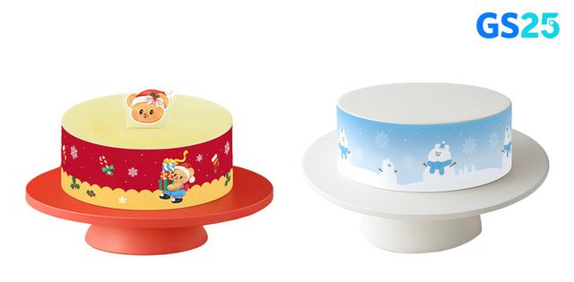 올해 크리스마스 한정으로 선보이는 홀케이크 2종 '버터베어슈크림케이크(왼쪽)와 '매일리얼우유케이크' 연출 이미지. ⓒ GS리테일