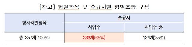 아울러 전체 357개 형벌조항 중 징역형을 규정한 조항은 268개(75%)에 달하는데, 징역형은 최후의 수단이어야 함에도 이를 과도하게 일반적 제재 수단으로 활용함으로써 ‘처벌 중심의 규제’가 일반화되어 있다고 지적했다.