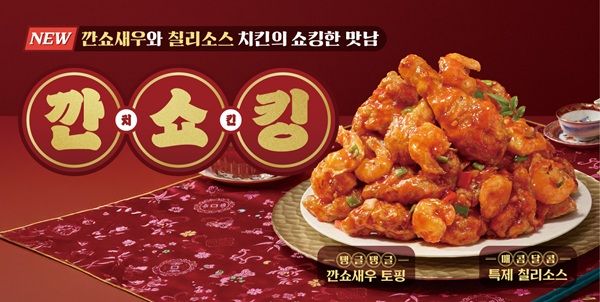 깐쇼킹치킨은 시선을 사로잡는 화려한 비주얼과 한입 먹는 순간 빠져드는 중독적인 맛이 특징이다. 바삭한 치킨과 탱글한 새우튀김이 달콤매콤한 특제 레드칠리 소스와 조화를 이루며, 3색 야채가 식감과 색감을 한층 풍부하게 살렸다. 한국식 레드칠리 소스를 활용한 새로운 스타일의 치킨으로 기존 메뉴와는 차별화된 입맛을 자극하는 색다른 즐거움을 담았다.