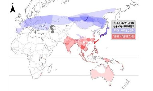 연구진이 이들을 분석한 결과, 55.5%(25종)는 일본 오키나와, 인도 등 적도와 가까운 저위도 지역에서 주로 분포하는 열대·아열대성 곤충으로 나타났다. 나머지 20종은 온대·냉대성 곤충이었다.