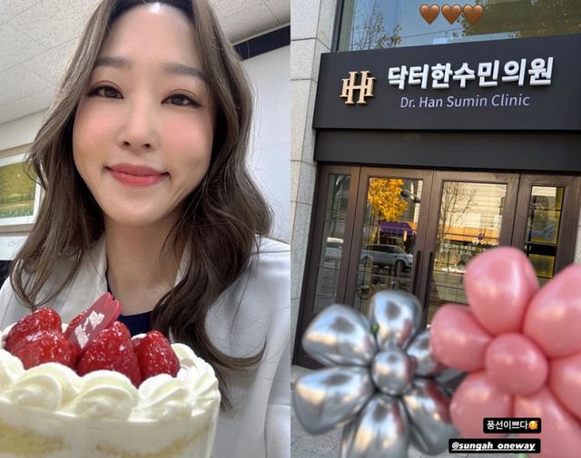 한수민은 19일 자신의 SNS에 “풍선 이쁘다”라는 글과 함께 병원의 외부 전경을 공개했다. 간판에는 ‘닥터 한수민 의원’이라고 적혀있으나, 브라운 톤의 깔끔한 인테리어가 눈에 띈다.