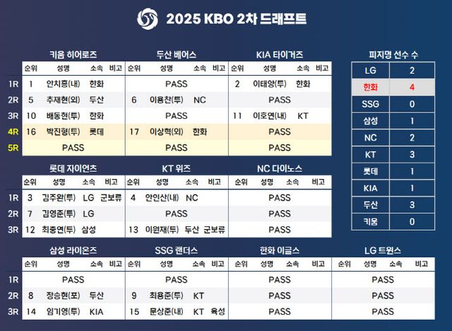 KBO는 19일 오후 2025 KBO 2차 드래프트를 실시했다. 비공개로 시행된 이번 KBO 2차 드래프트에서는 10개 구단 총 17명의 선수가 지명됐다.