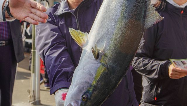 방어축제 행사 모습. 방어가 손에 들려있다. / 최남단 방어축제 공식 홈페이지