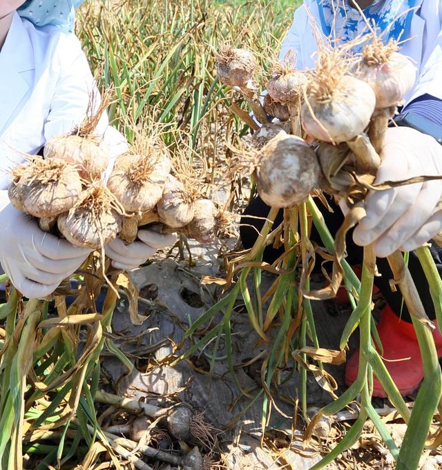 마늘 '홍산' 품종. 홍산은 끝 부분이 초록색을 띠는 특징이 있다. / 농촌진흥청 제공-뉴스1