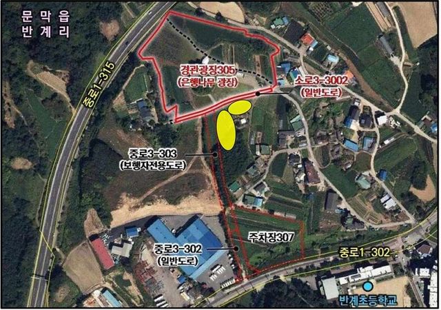 19일 원주시와 국가유산청에 따르면 반계리 은행나무가 있는 문막읍 반계리 1495-1 일원 9479㎡는 천연기념물 보호구역으로 지정돼있다. 이 보호구역 바깥 경계로부터 반경 500m 범위는 역사문화환경 보존지역에 해당한다.