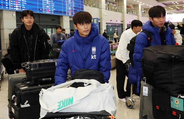 판다컵 우승을 차지한 U-22 대표팀이 19일 인천공항을 통해 귀국하고 있는 모습 / 뉴스1