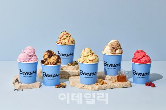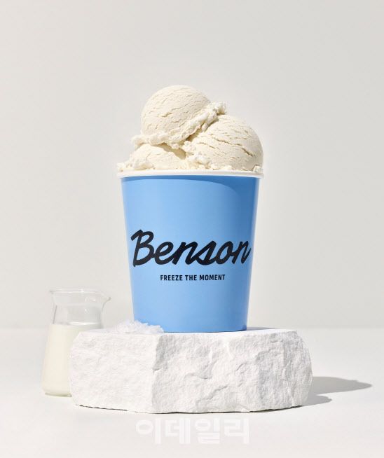 벤슨은 재료 본연의 맛에 집중한 고급 아이스크림 브랜드로 한화갤러리아 자회사(베러스쿱크리머리)가 올해 5월에 내놓은 신규 아이스크림 브랜드다. 부드러운 미국식 아이스크림인 ‘배스킨라빈스’과 유럽식 꾸덕한 아이스크림인 젤라또 중간 성격 아이스크림으로 평가된다. 브랜드명이 해외 이름을 연상시켜 한화갤러리아 또다른 자회사(에프지코리아)가 운영하는 고급 수제버거 ‘파이즈 가이즈’처럼 해외(미국) 브랜드를 수입한 것 같지만, 실제로는 순수 토종 브랜드다. 업계에 따르면, 벤슨이 지향하는 국내 고급 아이스크림 시장은 2023년 1조1000억원 수준으로 2020년 8000억원에서 33% 빠르게 커졌다. 같은기간 마트와 편의점에서 주로 팔리는 빙과류 중심의 매스 아이스크림 시장은 1조5000억원에서 1조4000억원으로 정체된 것과 대조된다.
