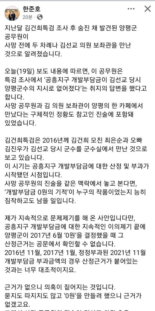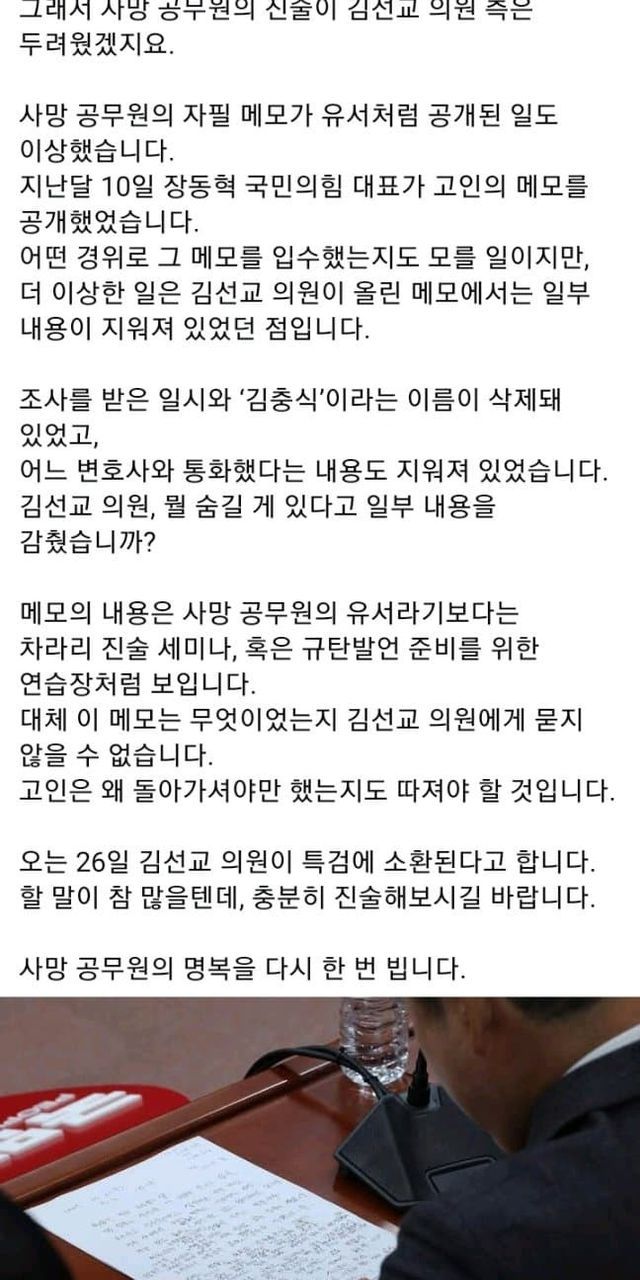 10일 돌연 김선교에게 유리한 진술의 유서 남기고 사망