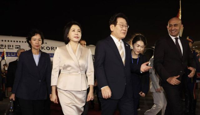 이 대통령과 김혜경 여사는 이날 오후 7시 41분께 카이로 국제공항에 도착해 공군 1호기에서 내렸다.