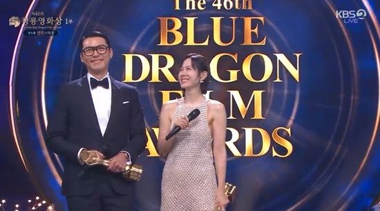 (엑스포츠뉴스 오승현 기자) 손예진과 현빈이 공식석상에 함께 포착, 나란히 주연상을 수상한 가운데 레드카펫 발언과 진한 포옹이 화제다.