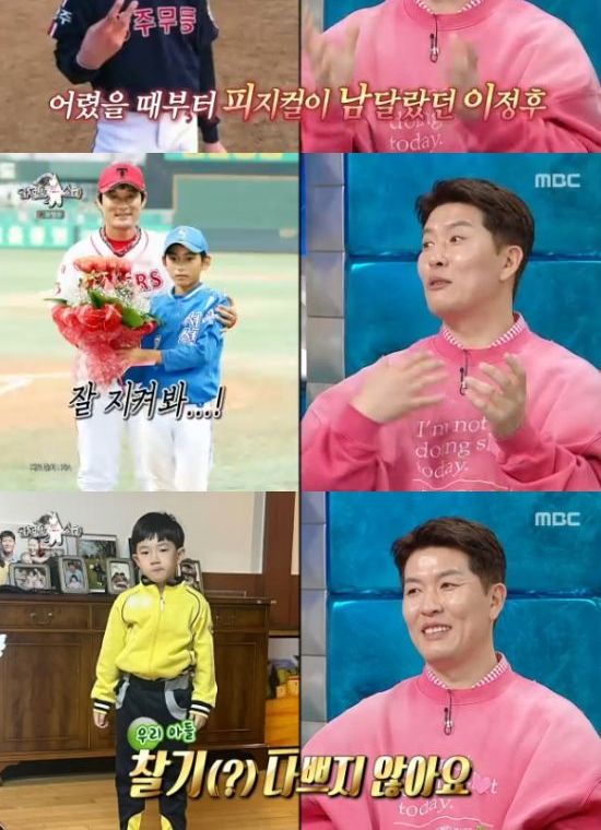 김병현은 "정후가 4살 쯤 처음 봤었다. 안아봤더니 피지컬이 남달랐다. 밸런스가 너무 좋았다. 이종범 선배한테 '야구를 무조건 시켜야겠다'고 했었고, 이종범 선배도 '잘 봐라'고 했는데, 그 아이가 커서 이정후 선수가 된거다. 뿌듯하다. 그런데 우리 아들 피지컬도 나쁘지 않다"고 덧붙이며 미소를 감추지 못했다.