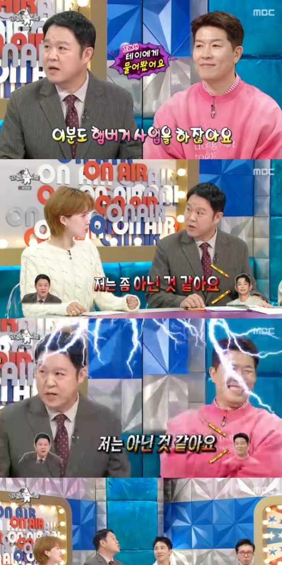 김구라는 "이분(김병현)도 햄버거 사업을 하고, 테이도 햄버거 사업을 하고 있지 않냐. 그래서 테이한테 '병현이 햄버거 어떠니'라고 물어봤다. 그랬더니 '솔직히 말씀드려요? 저는 좀 아닌 것 같아요'라고 하더라"고 말했다.
