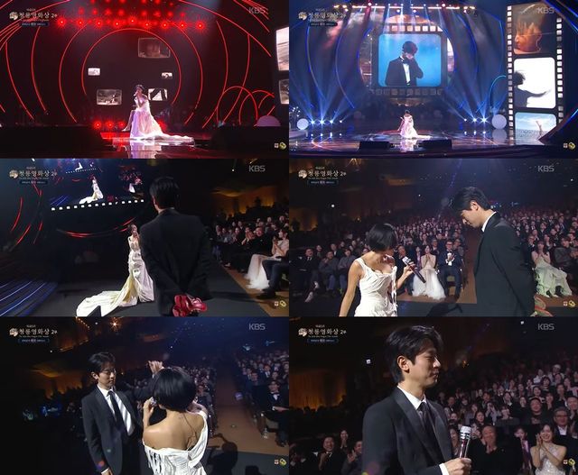 (엑스포츠뉴스 김예은 기자) 트로피는 가져가지 못했지만, 반응은 폭발적이다. 박정민이 화사와의 축하공연으로 여심을 사로잡았다.