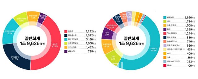 세출예산은 사회복지가 9696억원(49.4%)으로 가장 비중이 크고 교통 및 물류 1708억원(8.7%), 환경 1359억원(6.9%), 일반공공행정 1244억원(6.3%) 순으로 많았다.