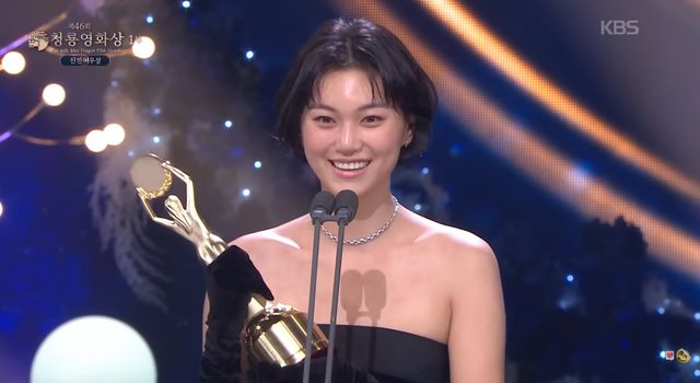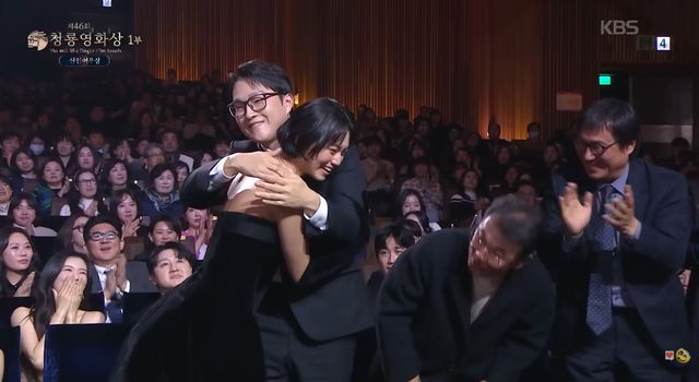 청룡영화상 시상식 무대에서 눈물을 쏟은 김도연 / KBS