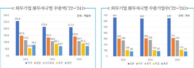 이와는 다르게 투자국별 수출 외투기업 수는 일본기업이 648개사로 가장 많았으며 미국(311개사), 중국(274개사), 독일(112개사), 홍콩(83개사) 등이 뒤를 이었다.
