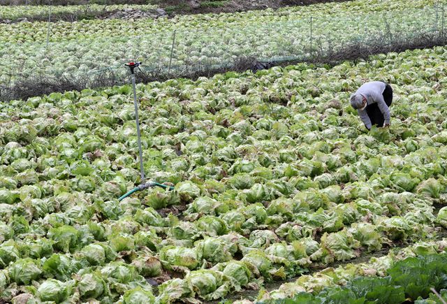 지난 2021년 10월 가을장마 여파로 무름병이 발생한 양배추밭의 모습. ⓒ 연합뉴스