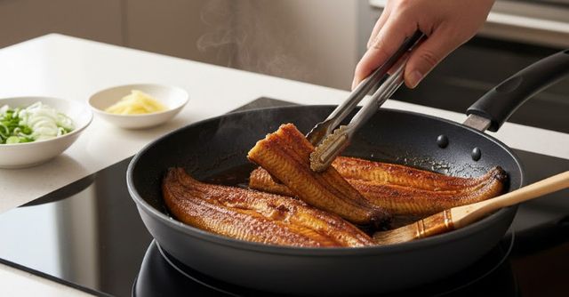 장어는 숯불에 굽는 게 정석처럼 여겨지지만, 집에서도 비슷한 식감을 만들 수 있다. 핵심은 수분 조절과 온도 관리다. 먼저 장어 손질된 살은 키친타월로 꼼꼼히 눌러 수분을 최대한 제거한다. 수분이 남아 있으면 바삭함이 생기지 않고 비린 냄새가 강해진다. 팬은 달궈짐이 눈으로 보일 정도로 강불에서 먼저 예열한다. 기름은 아주 얇게만 둘러 바닥이 번들거리지 않을 정도로 최소화하는 것이 좋다. 장어를 올린 뒤는 1분 정도만 강불로 표면을 굳히고, 이후 중약불로 줄여 속까지 천천히 익힌다. 이 단계에서 소금을 가볍게 뿌리면 장어 수분이 빠지며 결이 단단해지고 특유의 찐득한 감촉이 줄어든다.