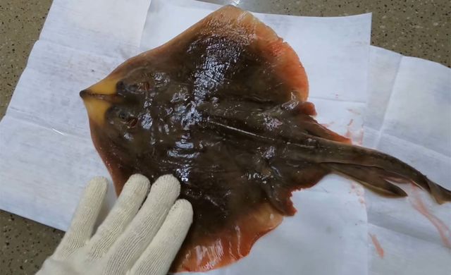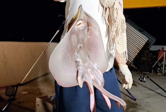 유튜버 '만쿨아빠'가 잡은 간재미. 표준명은 홍어다.