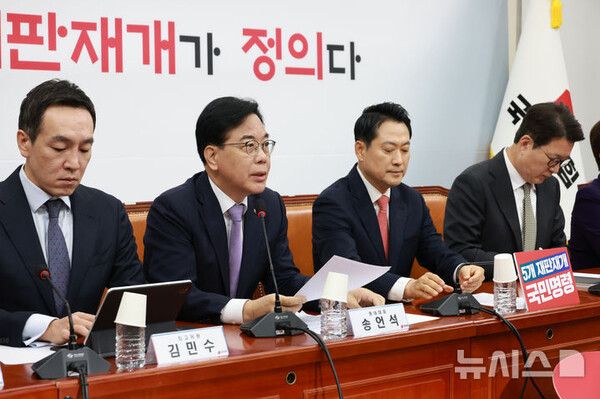 뉴시스 보도에 따르면, 송 원내대표는 이날 오전 국회에서 열린 최고위원회의에서 "정부·여당 고위인사들이 론스타 소송 승소를 두고 이재명 정부 외교 성과라고 자화자찬하는 모습은 황당함을 넘어 철없다는 생각이 든다"며 이같이 말했다.