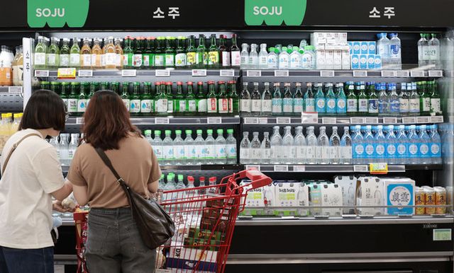 서울 시내의 한 마트에 소주 제품이 진열돼 있는 모습. ⓒ 연합뉴스