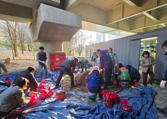 [와이뉴스] 남양주시는 19일 자율방재단 사무실 앞 설해기지에서 별내행정복지센터가 겨울철 설해 대비를 위해 민·관 합동으로 모래주머니를 제작했다고 밝혔다.