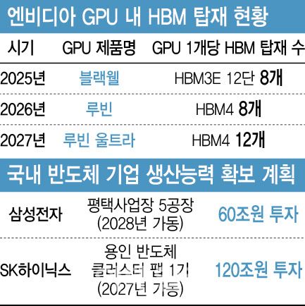 삼성전자와 SK하이닉스는 폭발적인 수요를 맞추고자 캐파 확대에 주력하고 있다. 삼성전자는 한동안 중단했던 평택캠퍼스 2단지 5라인(P5) 건설 공사를 재개하며 차세대 HBM 생산을 늘리기로 했다. 삼성은 P5라인 공사에 60조원을 투자했으며 오는 2028년 본 가동을 목표로 하고 있다. 이곳에서 HBM4 등을 집중 생산할 예정이다.
