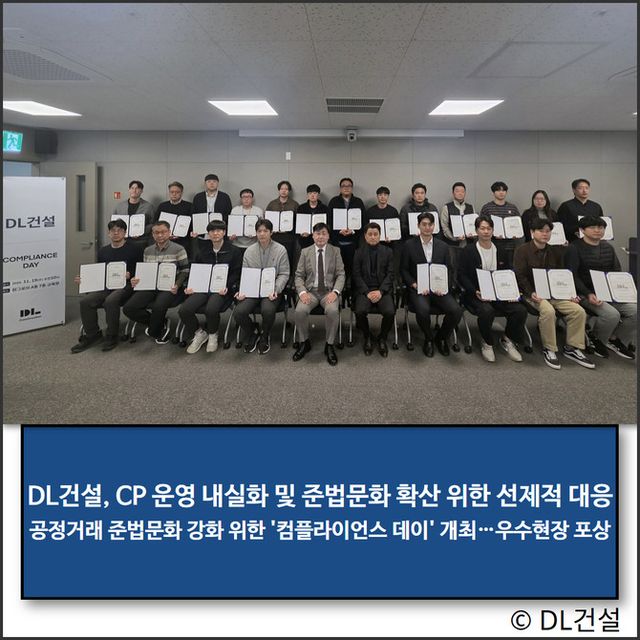 DL건설 관계자는 "이번 컴플라이언스 데이는 공정거래 자율준수 문화 확산을 위한 중요한 발걸음"이라며 "앞으로도 지속적으로 CP 운영을 강화하고 임직원의 준법 역량을 높여, 투명하고 공정한 거래질서를 확립해 나가 공정한 기업으로 자리매김할 것"이라고 말했다.
