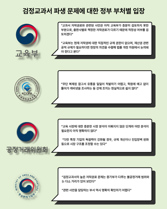 정부와 유관 부처의 장기적 방치와 부처 간 책임 공백이 검정교과서 시장의 구조적 왜곡을 더욱 심화시켰다는 비판이 나오는 이유다.