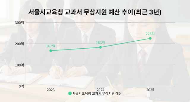 실제로 서울시교육청은 교과서 무상지원을 위해 최근 3년간 대규모 예산을 투입해왔다. 편성 내역을 보면 ▲2023년 167억 원 ▲2024년 183억 원 ▲2025년 225억 원으로 매년 지원 규모가 확대되고 있다.