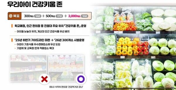 학교와 학원 주변 편의점에 있는 어린이 눈높이 진열대에 고염·고당 식품을 빼고 건강식품을 우선 배치하는 사업이 추진된다.