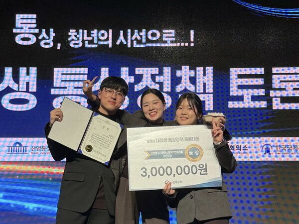 숭실대는 본교 토론동아리 '만장일치' 소속 학생들이 산업통상자원부가 주최한 '통상정책 토론대회'에서 금상, 동상, 인기상을 수상했다고 20일 밝혔다.