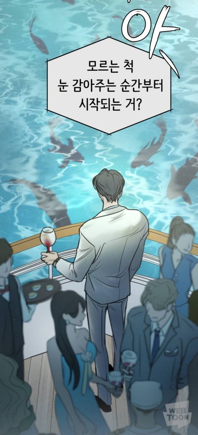 와인잔을 들고 크루즈에 선 남자의 뒷모습이 나옵니다.