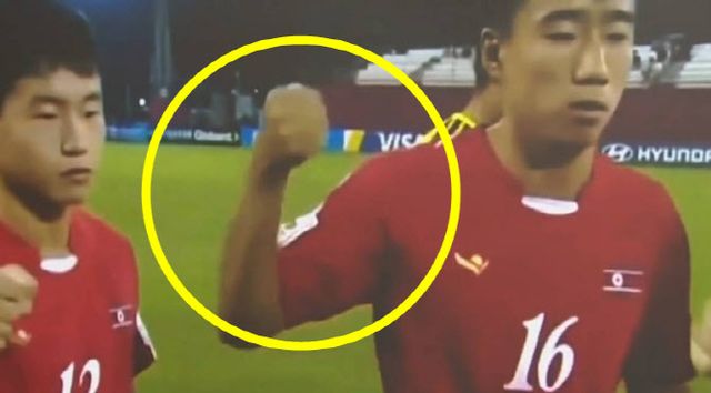 경기를 앞두고 양국 선수들이 도열해 인사를 나눴는데 북한 선수들이 주먹을 불끈 쥐고 일본 선수들 주먹을 내리친 것이다.