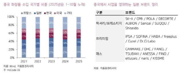 이어 “올해 1~10월 기준 중국 화장품 수입국 비중은 프랑스·일본·한국 순으로 한국이 일본의 바로 아래에 위치한다”며 “일본 브랜드들은 럭셔리부터 매스까지 포지션이 매우 넓어 수입 금지가 시행될 경우 상당한 규모의 대체 수요가 발생할 수 있다”고 전망했다.