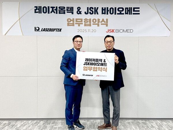 피부 미용 및 질환 치료 레이저기기 전문기업 레이저옵텍은 JSK바이오메드와 바늘 없는 약물전달시스템(Microjet Drug Delivery System) '미라젯(Mirajet)'의 제품 경쟁력 강화 및 글로벌 시장 진출 확대를 위한 업무협약(MOU)을 체결했다고 21일 밝혔다.