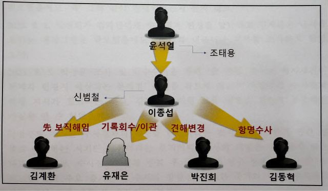 이 전 국방장관은 이같은 지시를 구체적이고 조직으로 전달한 혐의를 받는다. 조태용 전 실장은 경찰로 이첩된 수사 기록을 회수한데 관여하고 국회업무보고에서 거짓으로 진술한 혐의를 받고 있다.