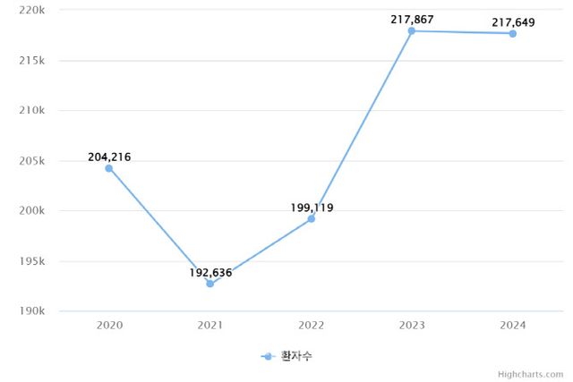 국내 상황도 크게 다르지 않다. 대략 전 세계적으로 인구의 6-10%의 유병률을 가지는 병인데 건강보험심사평가원 자료를 보면 국내 45세 이상 성인 5명 중 1명, 65세 이상 노인 3명 중 1명꼴로 앓고 있다. 국내에서의 만성폐쇄성폐질환 유병률은 다른 나라보다 높게 나타나는 편이다.