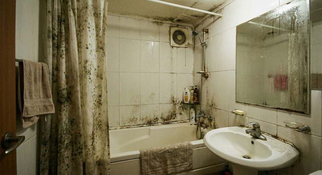 욕실 곰팡이. 극단적인 사례. 기사 내용을 바탕으로 AI가 생성한 자료사진.