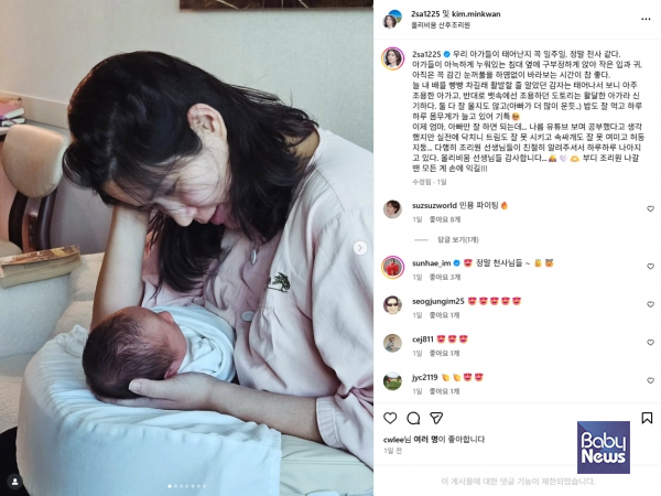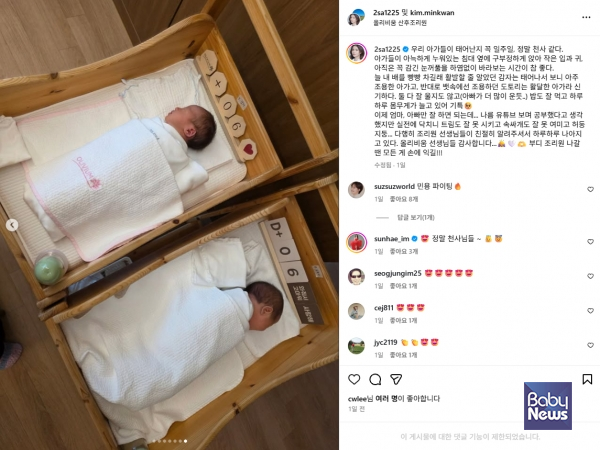 쌍둥이를 출산한 방송인 한민용 앵커가 산후조리원 일상을 공개하며 초보 부모로서의 감동과 어려움을 솔직하게 전해 주목을 받았다. ⓒ한민용 앵커 SNS 화면 칼무리